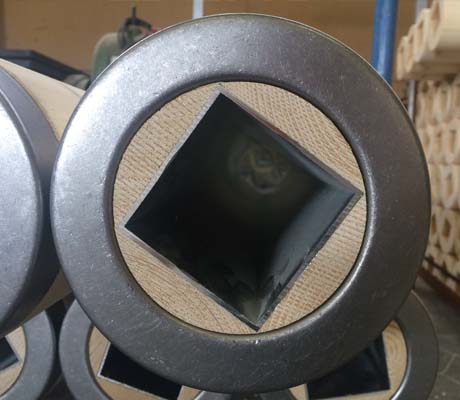 Our durable Scandinavian ISPM-15 pinewood cores (also called wooden rollers, drums, shells, tubes and spools) are always glued with an environmentally safe and moisture resistant wood glue and is unique for this kind of wooden product, because our wooden cores are manufactured for using a square axle, which optimizes the winding process during the production process.